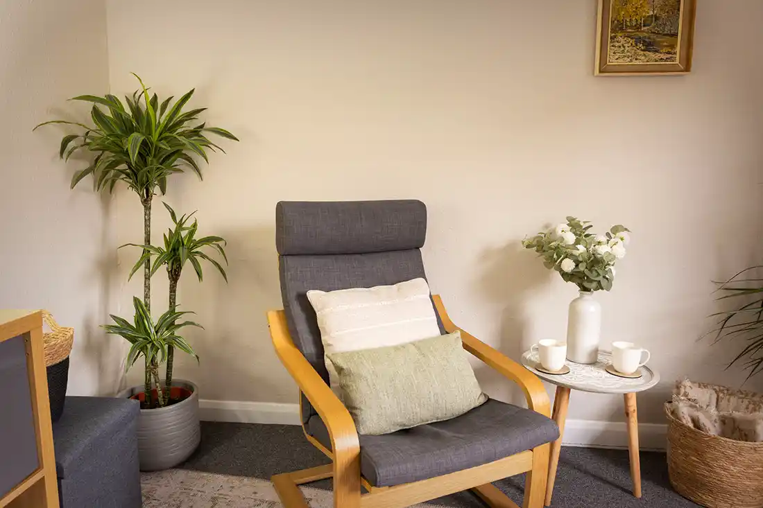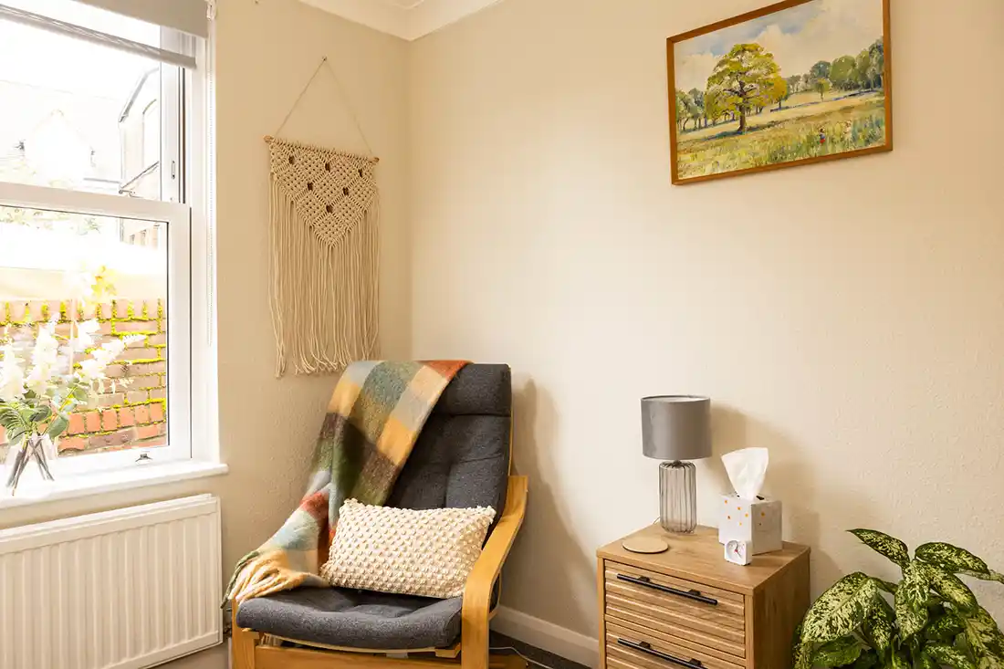 Room 1 is our second largest therapy room, measuring 10ft by 10ft and offering a bright, comfortable space for therapeutic work.